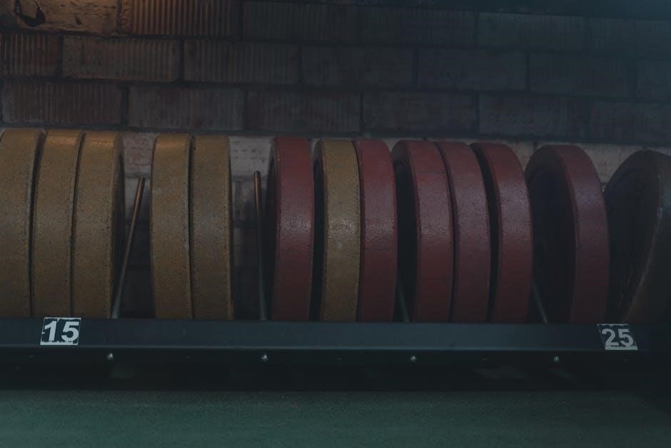 The PDF includes detailed exercise demonstrations and cues, emphasizing controlled movements throughout each repetition. It advises athletes to start with lighter weights to master technique before increasing the load. Utilizing mirrors or recording workouts can help self-assess and correct form.